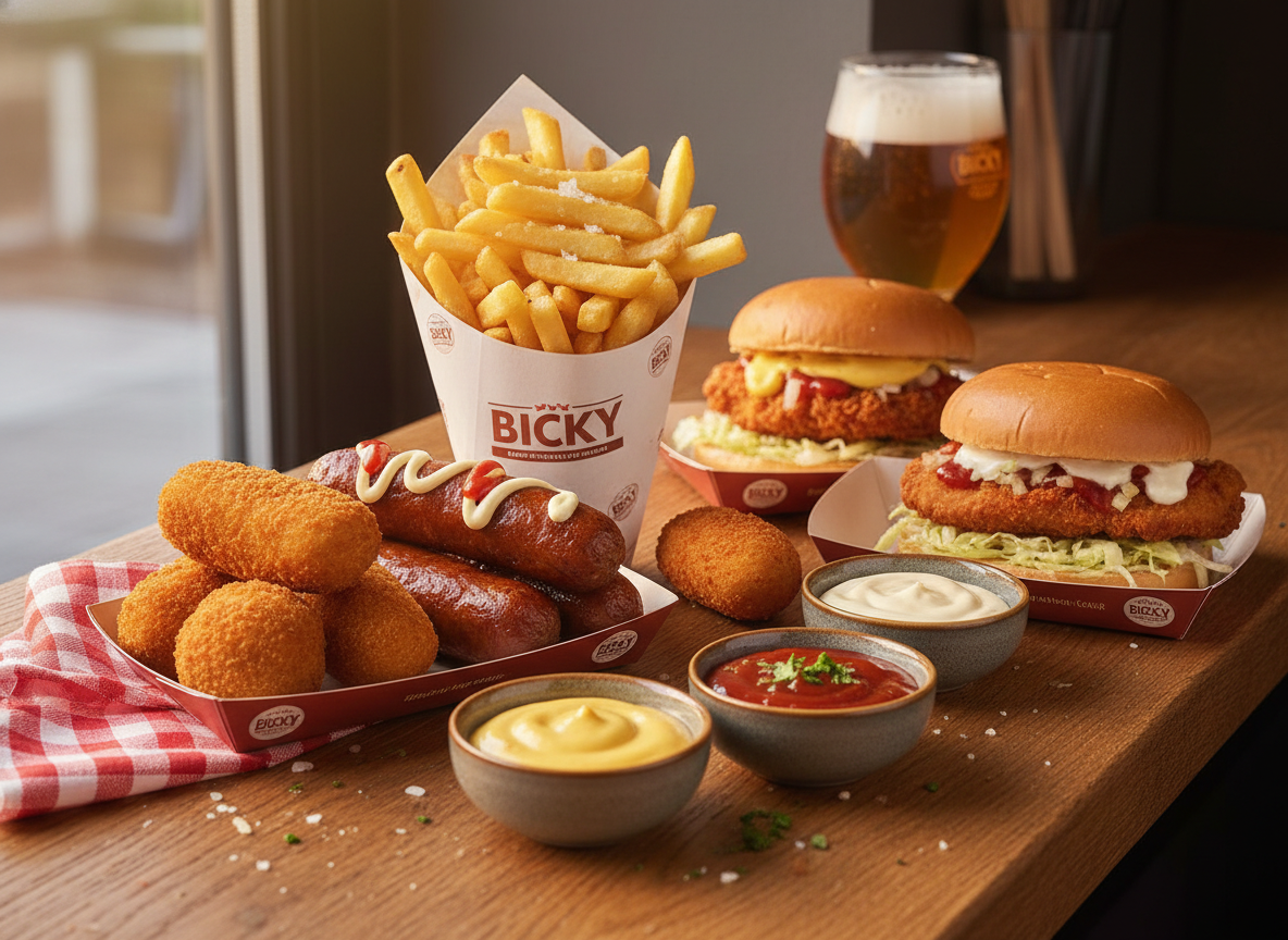 Naast onze goudgele frieten vind je bij ons een ruim aanbod aan klassieke snacks, burgers, stoofvlees en huisgemaakte sauzen.